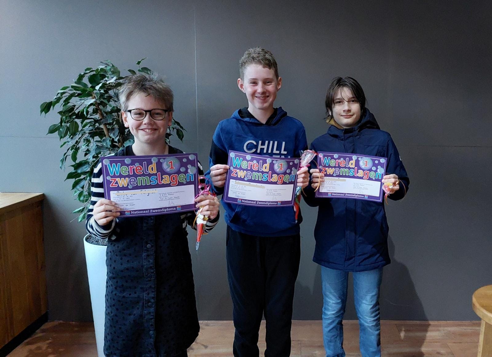 Stickerzwemdiploma’s voor Fabian, Wiebe en Birte!