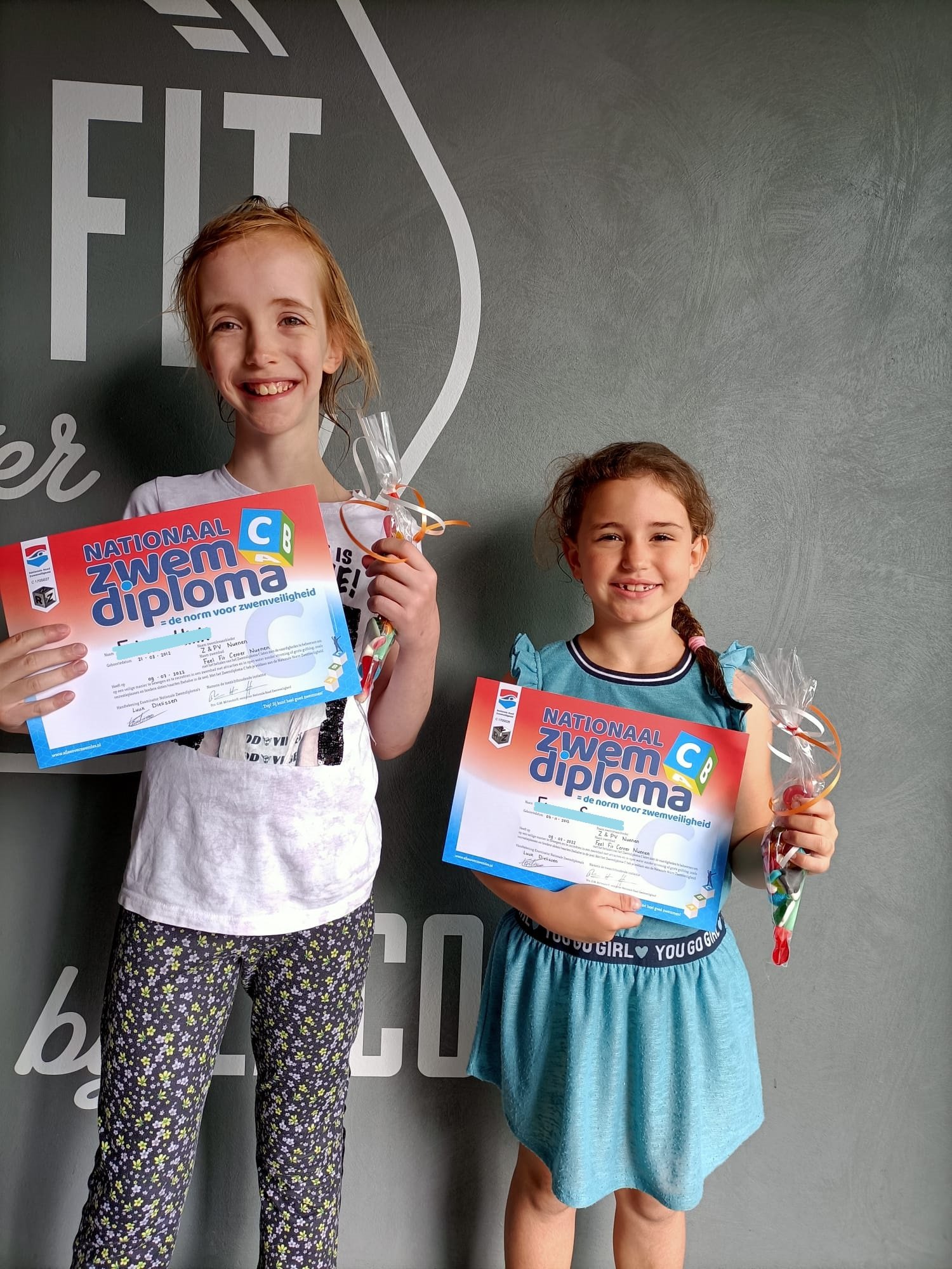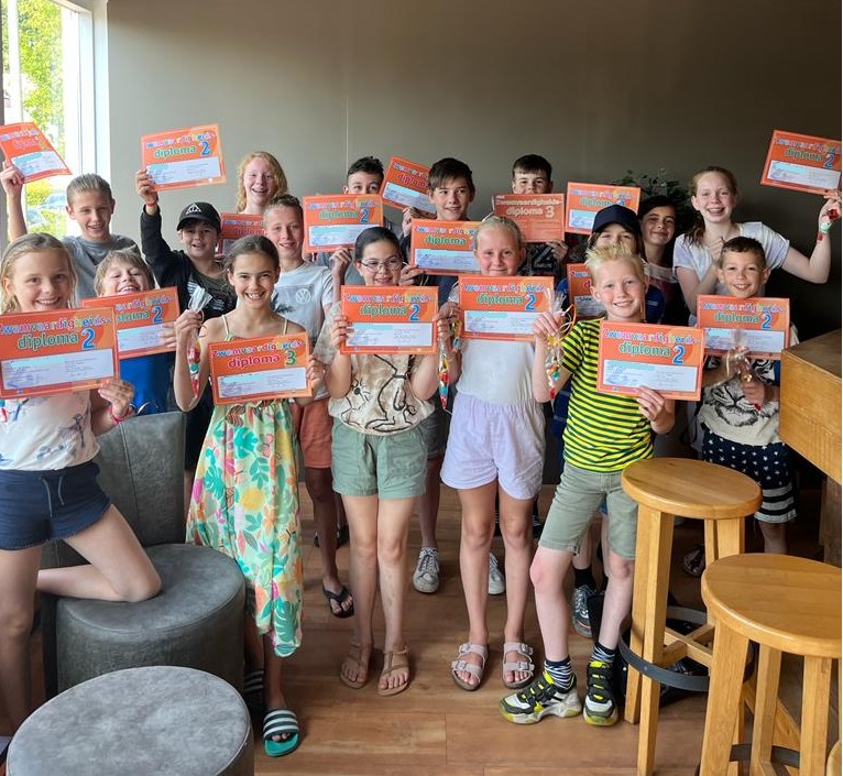 De afgelopen weken hebben we prachtige diploma’s uitgereikt voor C, zwemvaardigheid 1, 2 en 3. Wij zijn super trots op Feline en Fiore, zij mochten hun C diploma in ontvangst nemen. Daarna mochten we maar liefst 24 prachtige zwemvaardigheid 1 diploma’s uitreiken. Lieve Beau, Tom, Pim, Casper, Sietse, Loek, Jolijn, Lisa, Lisette, Dominik, Costa, Julian, Dawid, Gor, Eline, Fiene, Rens, Sofia, Mick, Lily, Floris, Rutger, Julian en Djaline van harte gefeliciteerd met dit fantastische resultaat. Niet te vergeten zijn de prachte zwemvaardigheid 2 diploma’s van Thijmen, Jeske, Tim, Sofian, Sara, Milan, Floor, Veerle, Jens, Robbe en Milou. Tot slot werd de rij compleet gemaakt door Arlyn, Rink, Shane, Gijs, Wiebe en Pleun met het zwemvaardigheid 3 diploma!